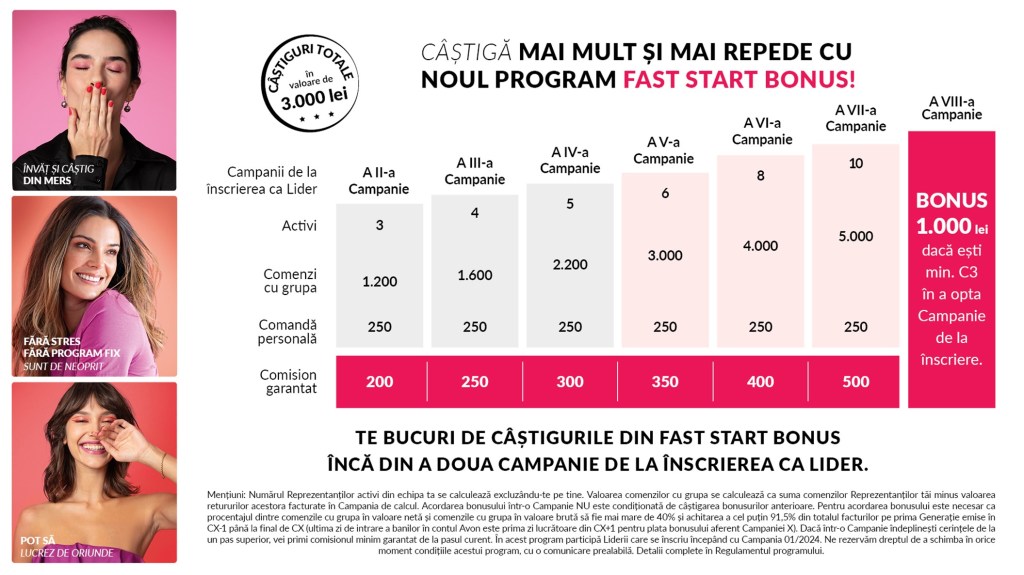 Pasul 3 – Liderul iti va prezenta programul Fast Start Bonus unde poti castiga pana la 3000 lei si te va indruma.
